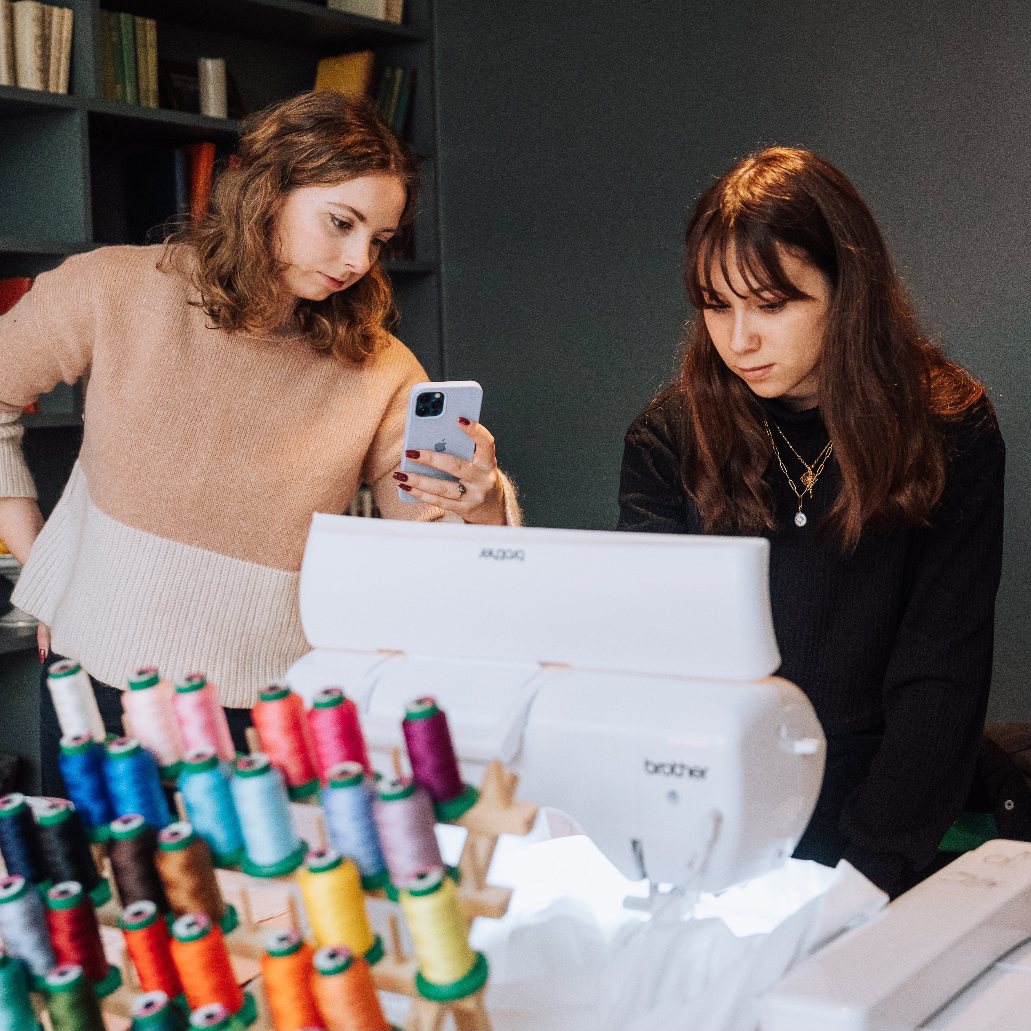 Broderie à la machine sur des taies d'oreiller lors d'une journée presse et influence de la marque Emma Sleep, et personnalisation de notre planche de flash broderies sur le thème du sommeil.