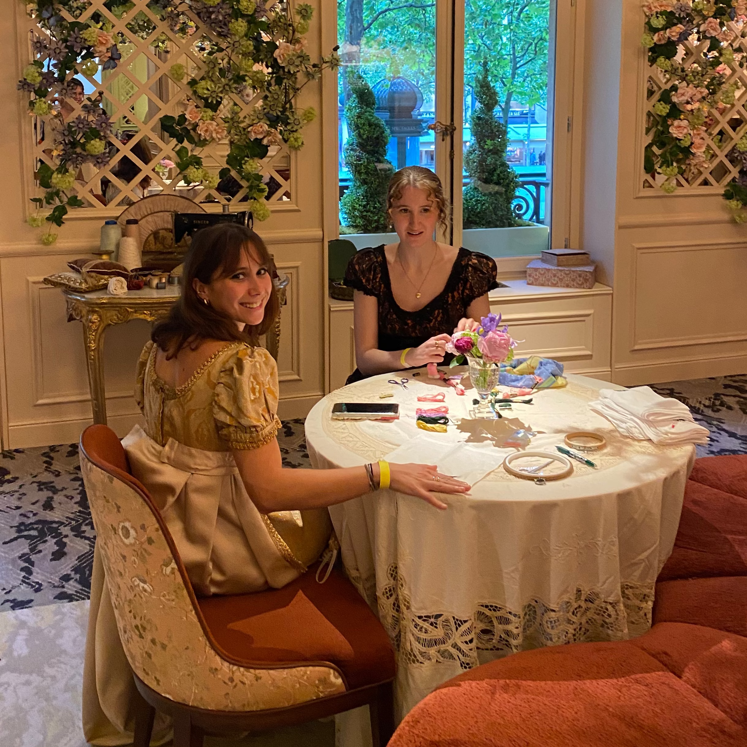 Broderie à la main d'initiales sur mouchoirs de poches pour 200 invités lors de la soirée Avant Première de la saison 4 des Chroniques de Bridgerton à Paris.