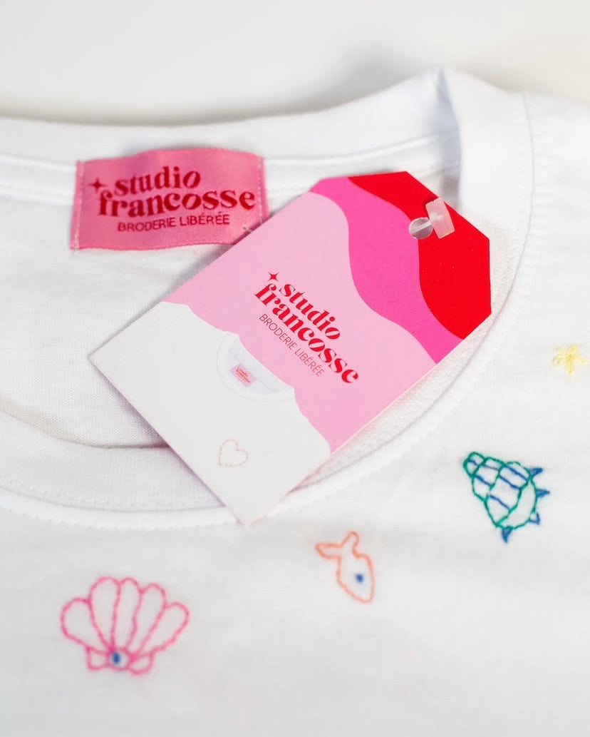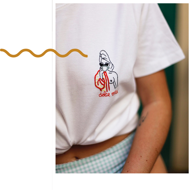 Je suis fière de pouvoir vous proposer un vestiaire brodé solaire, impertinent et libéré, avec des vêtements et accessoires confectionnés et brodés en France à l’image de mes valeurs et de vos envies.