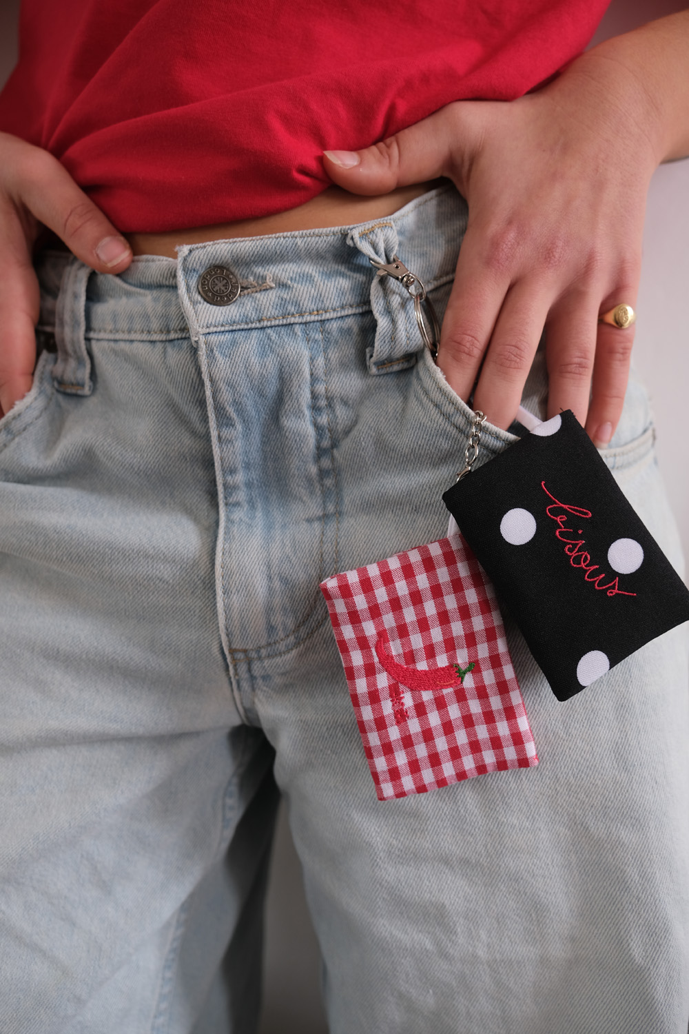 Découvre notre nouveauté brodée : le charms porte carte ! Pratique et tendance, tu peux y mettre toutes tes cartes et pièces et l’accrocher à ton sac ou ta ceinture. Entièrement confectionné et brodé dans notre atelier à Marseille, il est 100% fait main en France, avec nos chutes de tissus. avec amour et patience. Pensé pour celles et ceux qui osent, elles ajoutent une touche de couleur et d’audace à tes accessoires.