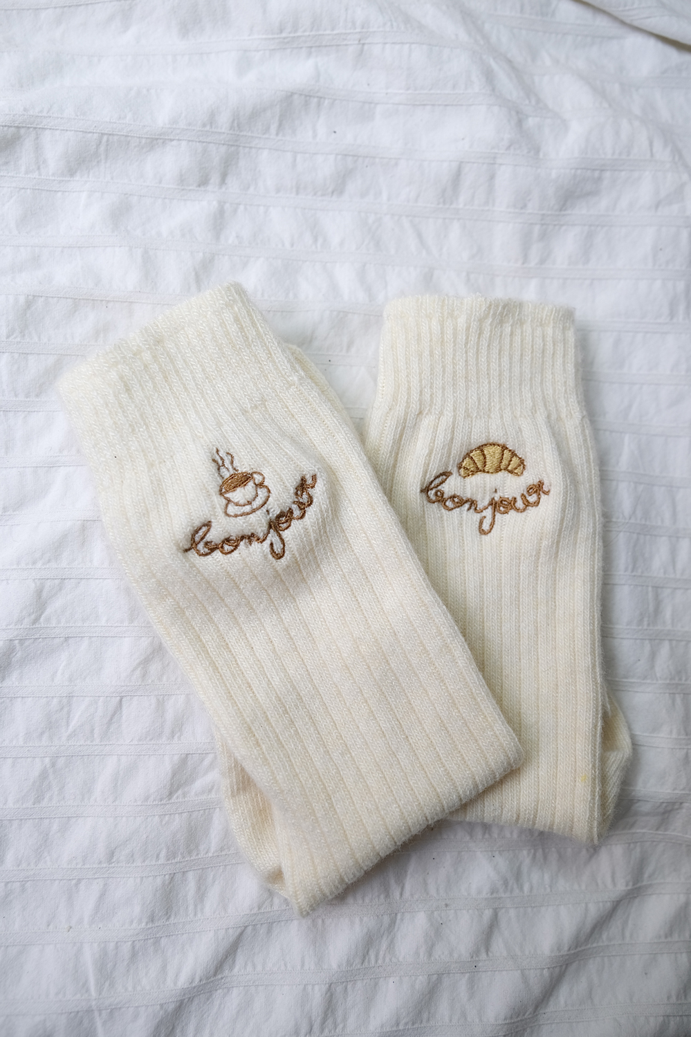 Découvre notre nouveauté brodée d’hiver toute douce ! LA pièce Studio Francosse qu’il te manquait  : nos chaussettes brodées en laine et cachemire, si douces et chaudes qu’on voudrait ne jamais les quitter !  Avec ses broderies déclinées  “Bonjour Paris”, elles sont brodées dans notre atelier à Marseille, avec amour et patience. Pensé pour celles et ceux qui osent, elles ajoutent une touche de couleur et d’audace à tes tenues, te tiennent au chaud l’hiver, et sont sans doute la meilleure idée cadeau pour Noël !