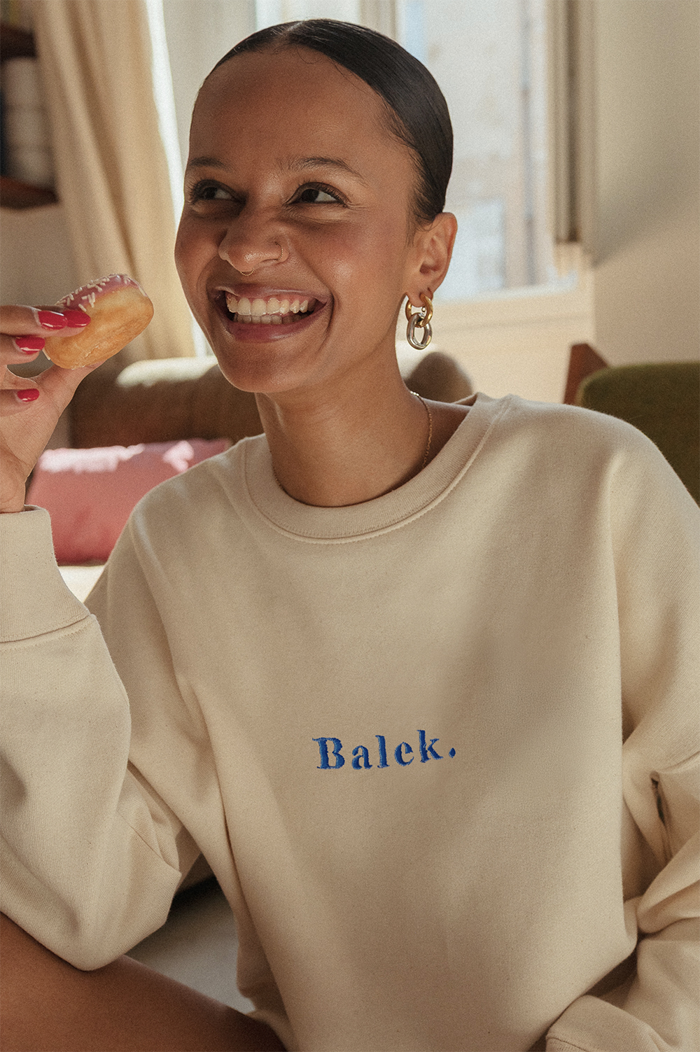 Exprimez votre insouciance et démarquez vous avec notre sweat brodé “Balek”, une pièce unique alliant parfaitement le confort du sweat avec le style original de la broderie. Sélectionné pour sa matière ultra douce, chaude et molletonnée, et sa coupe oversize parfaite, notre sweat 100% coton bio est brodé dans notre atelier à Marseille, avec amour et patience. Qui a dit qu’on ne pouvait pas être confort et stylée en même temps ? Offrez-vous un vêtement unique et intemporel qui exprime votre mood du jour !