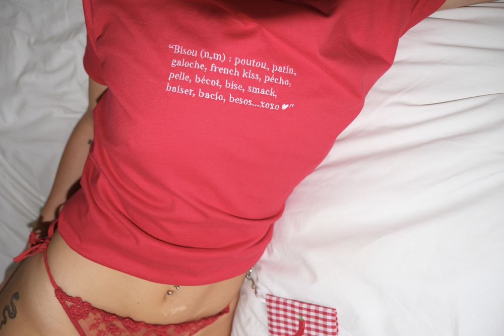 Découvrez notre nouveau t-shirt brodé drôle et libéré “Bisous & Co”, à l’occasion de la Saint Valentin pour célébrer l’amour et les bisous ! Notre tout premier t-shirt brodé rouge, une pièce unique confectionnée avec amour à Marseille. Sélectionné pour sa douceur et sa coupe unisexe parfaite, notre t-shirt 100% coton est brodé dans notre atelier Marseille.