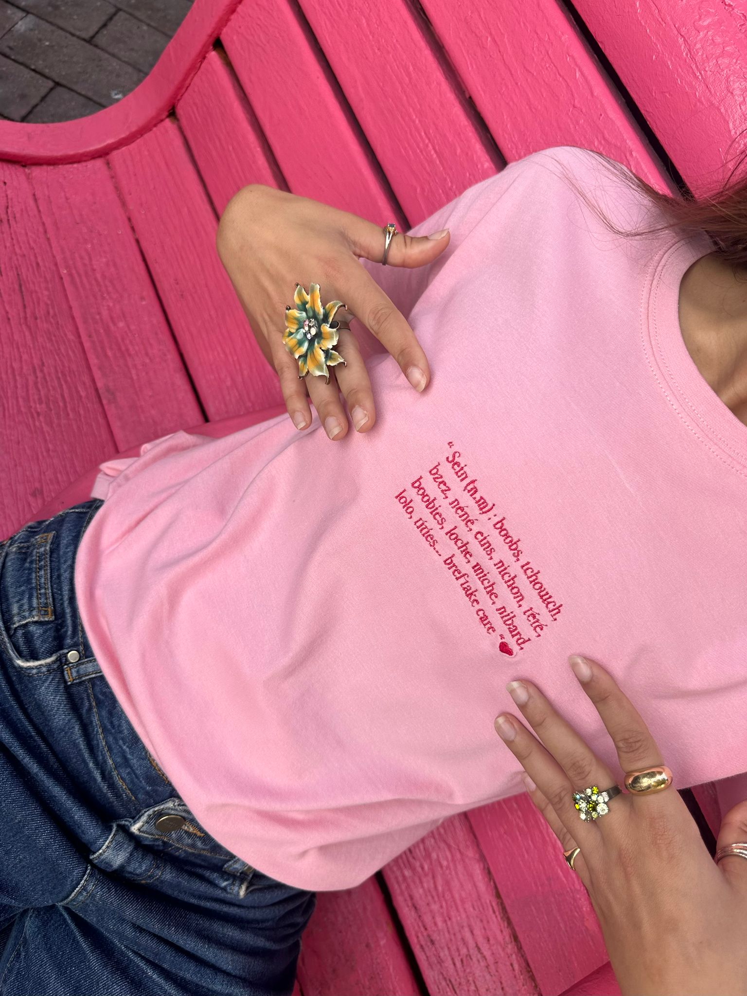 Découvrez notre nouveau t-shirt brodé engagé, drôle et libéré “Boobs & Co”, à l’occasion d’Octobre rose pour soutenir les recherches contre le cancer du Sein ! Notre tout premier t-shirt brodé rose, une pièce unique confectionnée avec amour à Marseille. Sélectionné pour sa douceur et sa coupe unisexe parfaite, notre t-shirt 100% coton est brodé dans notre atelier Marseille. 10% des bénéfices seront reversés à l’Association Ruban Rose.