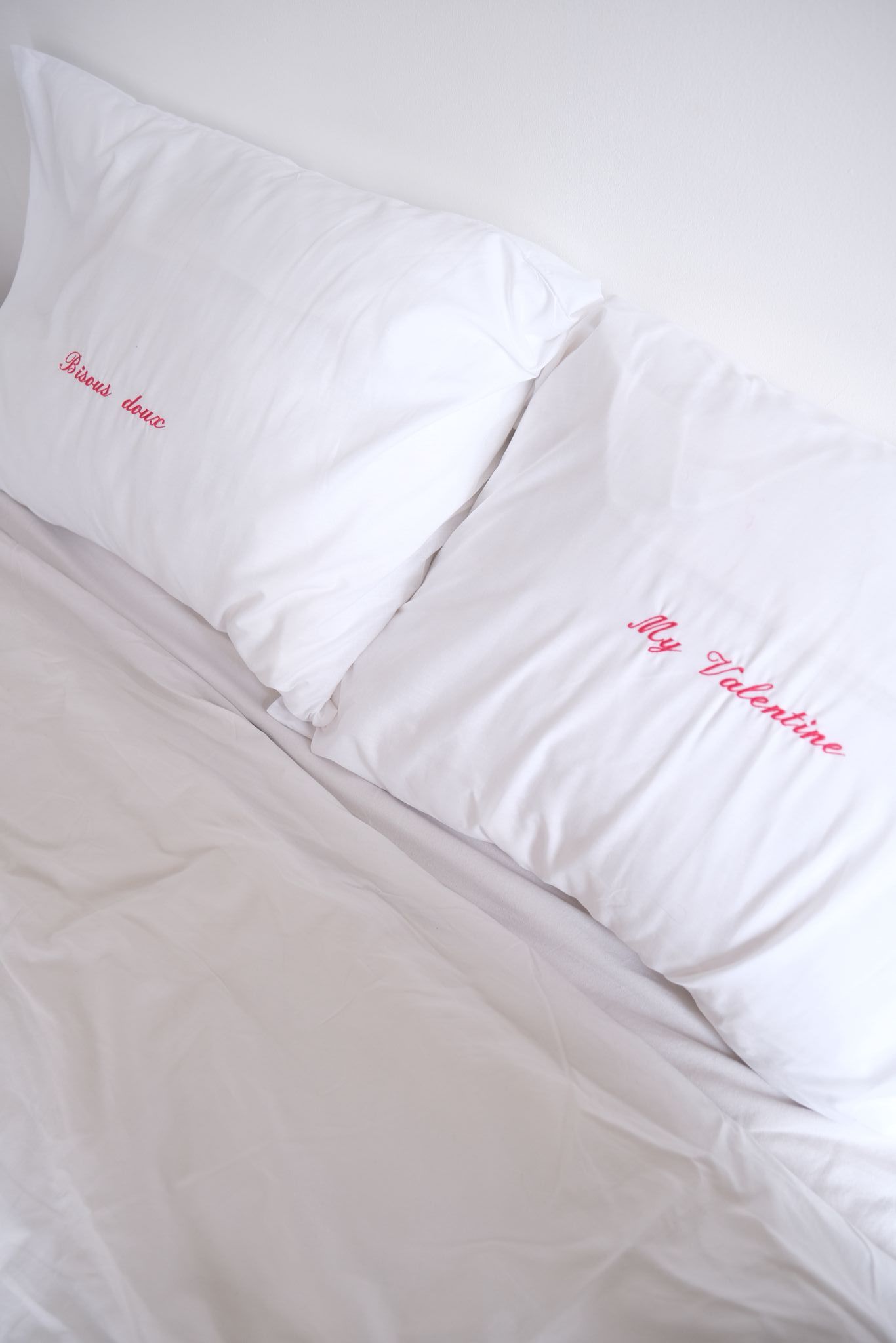 Personnalisez vos taies d’oreiller sur-mesure grâce à la broderie à la main ! Choisissez votre propre message personnalisé et nous créons pour vous des taies d’oreillers uniques et mémorables.